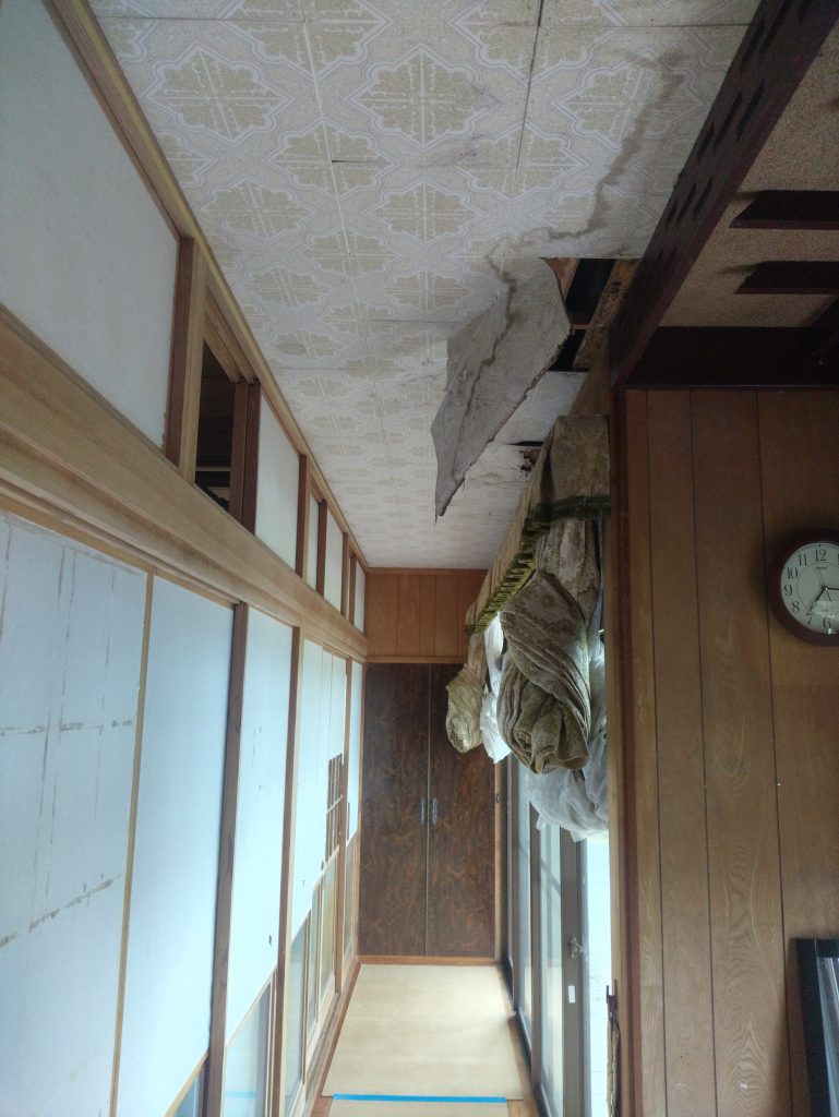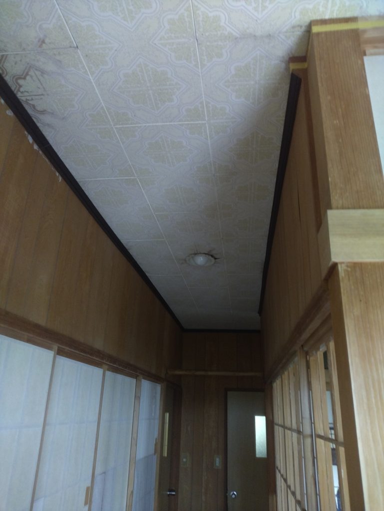 早速、中にお邪魔すると、玄関と廊下の天井にシミが見られました。