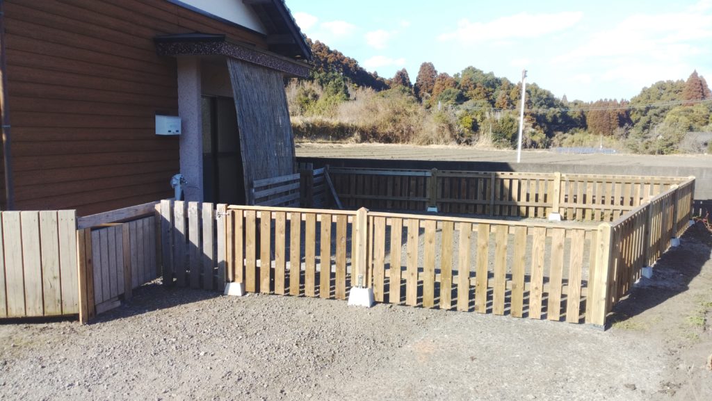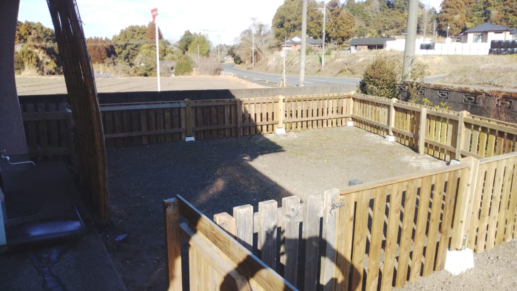 さて今回は、ドッグランスペースの柵を作ってほしいと依頼を頂き、作成してきました。元々、駐車場として使っていたスペースに柵を作り、わんちゃん達が走れる場所にしました。大工の作った柵がわんちゃん達に倒されるわけにはいきません!(笑)